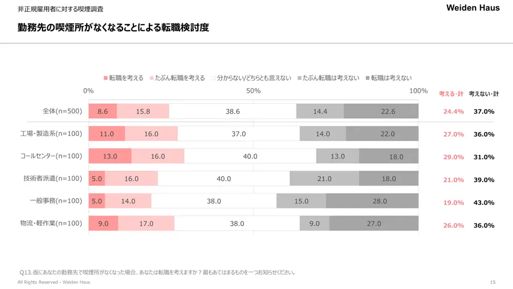 喫煙所がなくなると2割強は転職も検討