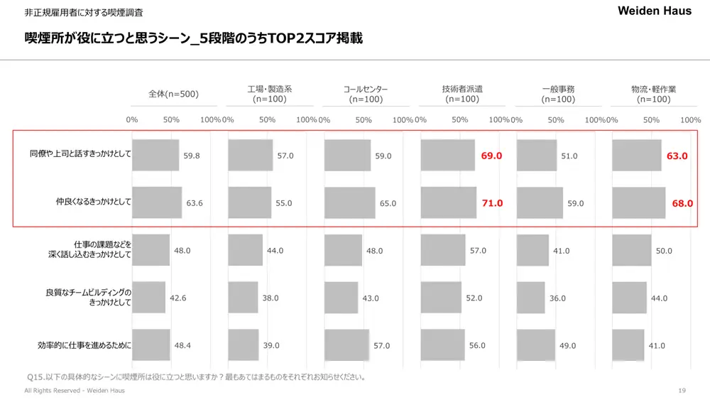 巷でよく言われている職場でのタバコミュニケーションも、非正規雇用の喫煙者は実際に価値を感じていることが明らかになりました。